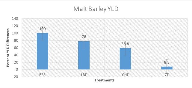 This study was conducted to investigate the effects of beer bio-sludge, liquid bio-fertilizer and inorganic fertilizer application to barley (Hordeum vulgare L.) var. traveler on the plant performance, grain quality and some soil properties. Treatments applied were: (1) Beer Bio-Sludge (BBS) (2) Liquid Bio-Fertilizer (LBF) (3) Chemical Fertilizer (CHF) (4) No Fertilizer (Control). The experiment was laid-out in simple plot design and randomized over locations. The plot sizes were 10m x 10m = 100m2. Phonologic, diseases, agronomic and yield, data were collected. Grain quality, sludge, liquid fertilizer and soil analysis were done. Sample sizes of ten plants/plot were used for agronomic data i.e., for plant height, panicle length, number of tiller and spikelet/panicle. Yield and yield related data; Thousand Kernel Weight (TKW), Straw Weight (STW) and Yield (YLD) were collected from 1m x 1m = 1m2 plot size. Significantly (p<0.05%) higher thousand kernel weight (51.63g), straw weight (1145 kg ha1) and grain yield (70.34 qt ha1) were obtained from soil applied with BBS and followed by LBF (50.25g, 1035kg ha1 and 65.08 qt ha1). Beer bio-sludge increased the yield of barley by (2.2, 4.12 and 9.17%) over that of LBF, CHF and Control, respectively. The linear correlation analysis indicated that, seed yield of malt barley had a positive and significant correlation with most of growth parameters and yield. The soil analysis result revealed that, soil in the two locations were in silt-clay textural classification and moderately acidic ranging from 5.53 to 5.53. Similarly, BBS improved soil chemical (acidity) and physical properties (textural classes) as compared to inorganic and non-fertilizer. The BBS treated soil showed higher value for some of major and secondary soil elements namely; available phosphors (17.11mg/kg (ppm)), potassium (553.22mg/kg (ppm)) calcium (2,499.01mg/kg (ppm)), magnesium (277.33 mm/kg(ppm), Sulfur (16.93mg/kg(ppm), high total nitrogen (0.32%), organic carbon (4.42%) and Cation Exchange Capacity (CEC) (32.01Meq/100g soil) as compared to others treatments. There was no effects of BBS treated soil on heavy metals concentration such as, Cu, Mo, Ni, Zn, Pb, Cd and Hg is comparably in accepted international standard ranges. H/ever, Nitrogen Percentage (14.80 and 12.00%), respectively in grain were little higher than the standard (<12%) in both BBS and untreated soil (control). In this study one can concluded that, the beer bio-sludge can improve both the physical & chemical properties of soil. Hence, BBS can serve as one of the best source of bio-fertilizers in the study areas and areas with similar agro-ecology zones.