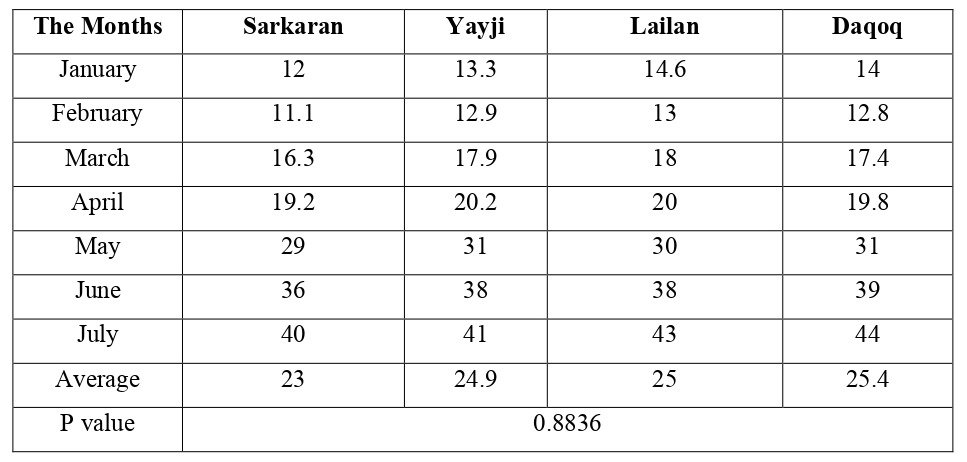 A Comparison of Fish Ponds in the Lailan, Daqoq, Yayji, and Sarkaran Areas in Terms of Temperature and Ph