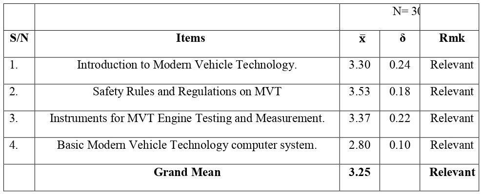 Content Framework for Modern Vehicle Technology Integration into Motor Vehicle Mechanic Work Curriculum in Technical Colleges in Gombe State, Nigeria