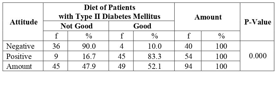 Relationship of Knowledge and Attitude to Diet of Patients with Type II Diabetes Mellitus in the Working Area of the Simpang IV Sipin Public Health Center, Jambi City, 2022