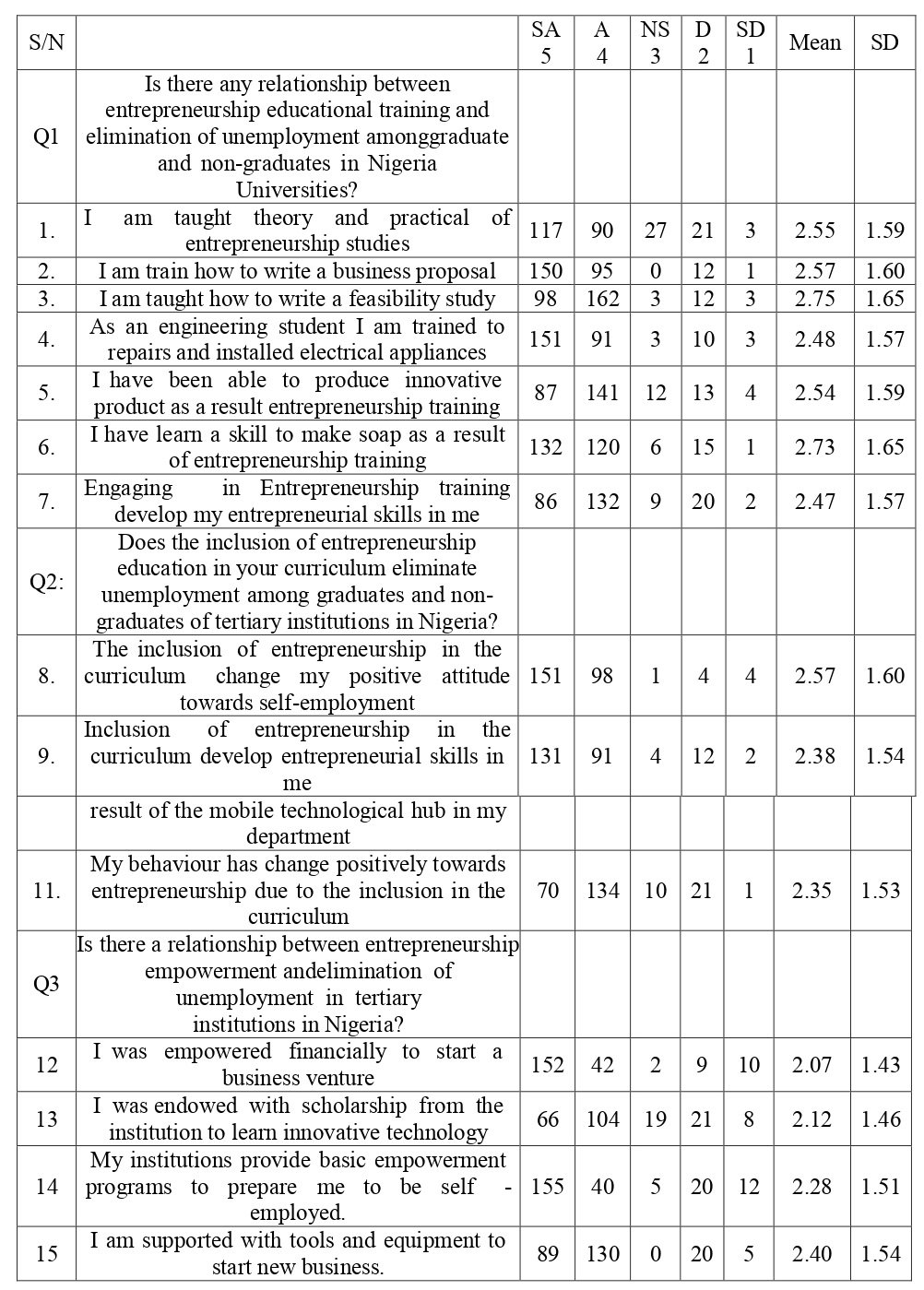 Entrepreneurship Education And Elimination Of Unemployement Among Graduates And Non-Graduates Of Tertiary Institutions In Nigeria